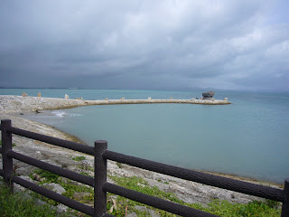 海中トンネルですここは離島を繋いでる道路ですめっちゃきれいなんだよ ただ あいにくの台風です(^▽^;) 海の色がちょっと緑色でした(苦笑)でも逆に日本一周の間で初めての感じの海で ちょっと良かったです (≧∇≦)ノ動画1